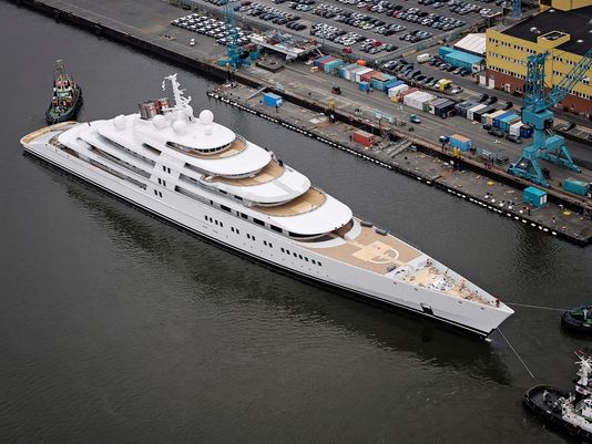 Größte Yacht der Welt 180 m Lang Kosten ca 490 Mio € Zwei Gasturbinen 2 Dieselmotoren gesamt 94.000 PS Eigner vermudlich aus den Emiraten