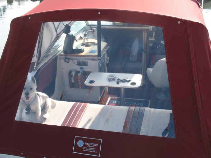 Camperverdeck der Fa. Bootssattlerei Hallier (Scheiben NEU in 2016 !!) mit Klett-Beschattungen rundum !!!