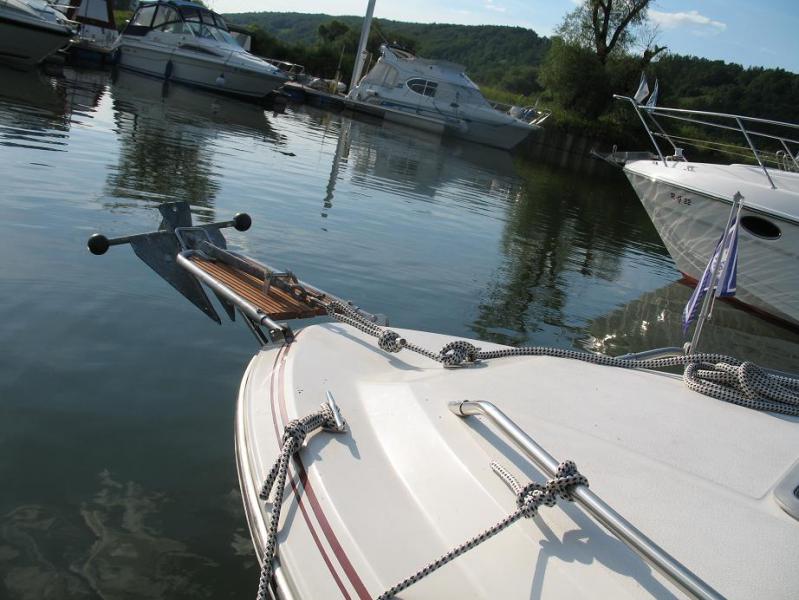 Bugspriet mit Anker und Ankerleine