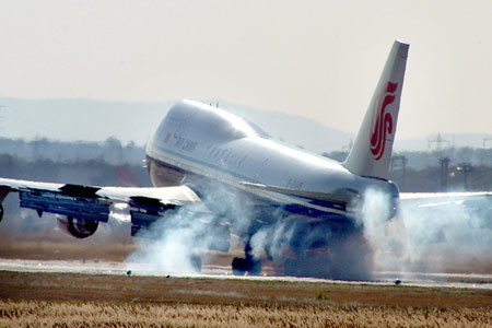 Also, bei dem rechts sind das die Reifen beim Landen, die so qualmen. Aber links???????????????????????