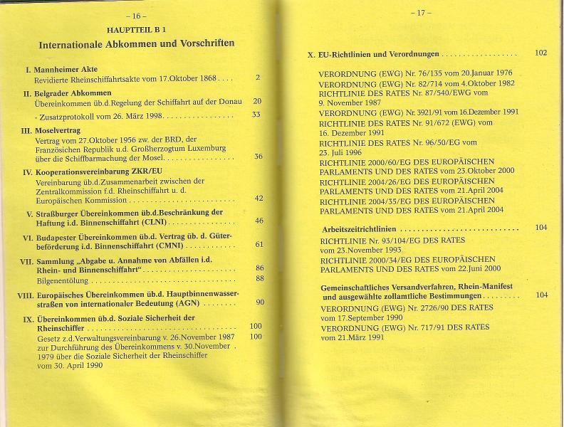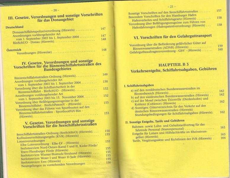 Den aktuellen WESKA empfehle ich eh bei einer großen Donaufahrt da z.B. sämtliche Verordnungen und Gesetze enthalten sind (auch Funk) und das in einem äußerst handlichem DIA A6 Format. Außerdem sind noch viele andere Infos, Telefonnummern, Adressen etc. enthalten.